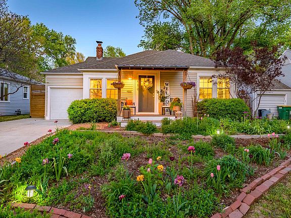 Tucked away in a charming, established neighborhood just south of College Hill and Kellogg, this classic home exudes character and warmth. Its prime location offers easy access to all of Wichita, making it a standout property. Tastefully updated and lovingly maintained, the sellers have enjoyed calling this house a home the last eleven years and it shows! Pride of ownership is evident from the moment you arrive, with a beautifully landscaped front yard featuring blooming perennials and a welcoming covered porch. Inside, an arched entry, original hardwood floors, niches, a decorative fireplace, exposed brick, and built-ins add to the home's charm, while modern updates provide convenience. The unfinished basement offers endless possibilities for additional living spaces. The backyard oasis has a hobby greenhouse, potting bench, raised garden beds, multiple seating areas, and children's play equipment, making this a dream retreat! With so much to offer, this home is perfect for those looking to "right-size" (aka downsize) or purchase their very first home. Don't miss out - schedule your private showing today!