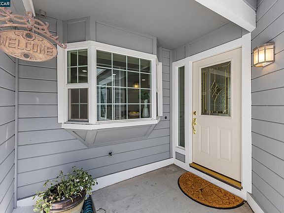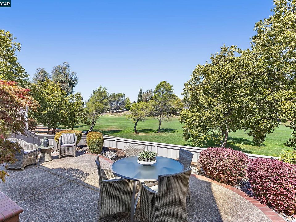 Sought-after, rarely available one story Fairway Villa built by Warmington– set on a prime golf course lot in the gated community at Crow Canyon Country Club—& boasting tranquil, wind-protected elevated views fairway views. Wonderfully open layout, design, & flow. Optimal floor plan with the primary suite placed in its own wing– & opening to the back patio and views. Secondary bedroom, office, guest bath, & laundry are set in a separate wing—along with the coveted and hard-to-find direct garage access from the interior! Great room is an entertainer’s dream—enjoying easy flow & connectivity with the back patio & kitchen— & features a vaulted ceiling, skylights, & gas fireplace. Kitchen—the heart of the home—opens to the great room & features slab granite counters, stainless steel appliances, abundant counter space & storage, & garden window with views to the courtyard entry which features a tall privacy wall rarely found in this model. Remodeled primary ensuite bath enjoys a large tiled stall shower, expansive double sink vanity, & skylight. Wood laminate floors in the great room, kitchen, office, & hallway. Dual pane doors & windows. This is the 1st MLS resale opportunity since 12/2018 for this model to come available with a wind-shielded view lot! Must see! Open 1-5 Sat & Sun!