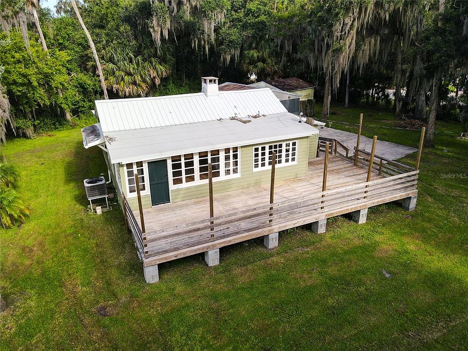 STONE ISLAND SUPER BUY!- CHARMING HOME & FAB LOCATON Experience the timeless CHARM of 1933 with this CAPTIVATING COTTAGE on BIG .4 acre. Enjoy STUNNING views of LAKE MONROE from the expansive 400 square foot living room, featuring a SOARING CEILING, a cozy fireplace, and an abundance of light- windows galore throughout this home-sunny & cheerful! The kitchen exudes VINTAGE ELEGANCE with its antique finishes & furniture, blending old-world charm with modern convenience. Each spacious bedroom offers direct access to a private bathroom, ensuring comfort and privacy for all. BIG outdoor DECK to enjoy the Lake breezes and view. Located directly across from a park and close to the boat ramp, this home is perfect for lake enthusiasts looking to jet ski, boat, or kayak. The community is golf cart friendly and provides easy access to the Spring to Spring Trail, allowing you to cycle to the beach and springs from your doorstep. Recent upgrades include a NEW METAL ROOF with insulation, AC & WATER HEATER installed in 2022, and updated electrical in 2010. Exterior has Hardy Board siding. The appliances are less than 3 years old and washer & dryer included. THIS DELIGHTFUL STONE ISLAND COTTAGE PERFECTLY COMBINES CLASSIC ALLURE WITH CONTEMPORARY AMENITIES, OFFERING A UNIQUE OPPORTUNITY TO EMBRACE LAKE LIFE IN STYLE. Stone Island amenities include boat ramp on Lake, tennis & pickleball courts, horse stables. There are 2 outbuilding with cement slabs but both need work. City water & sewer with well (sprinkler as is). Termite Bond. EVERYONE LOVES STONE ISLAND. This home is not in the Stone Island homeowners association, membership required to use the stables. .