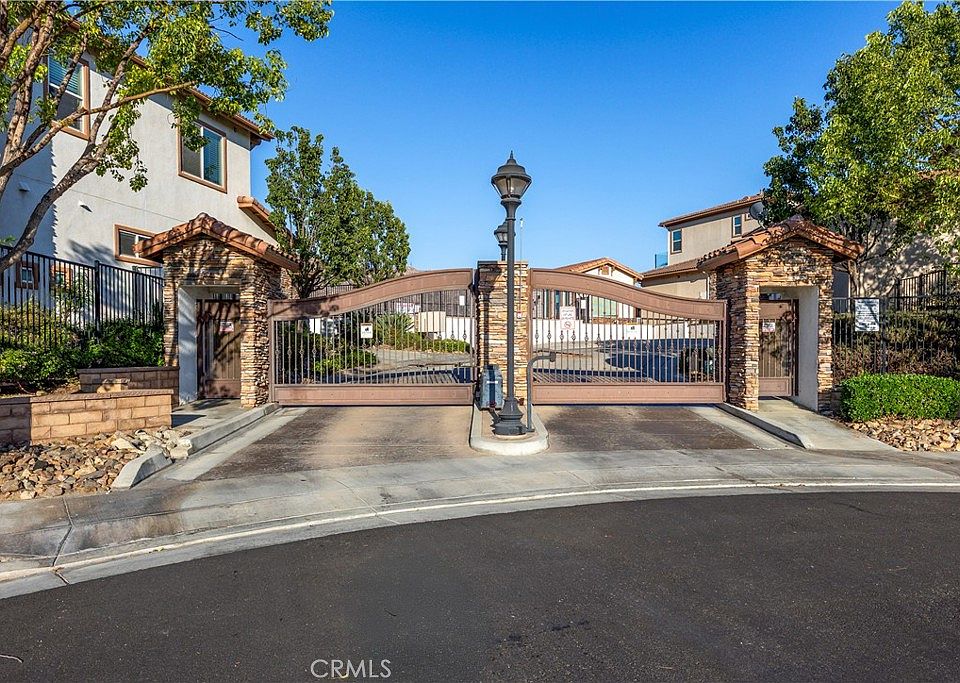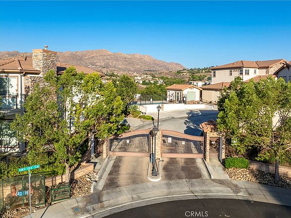 This GORGEOUS former model home is located in the Exclusive and Highly Desirable Community of Rocky Point in Canyon Crest. The community is gated, family friendly and offers residents a community pool, spa and club house. As a former model home it has all the amenities you desire. Rocky Point is a 5 minute drive to UCR, a 5 minute walk to Canyon Crest Towne Center and close to downtown Riverside. The Towne Center includes Ralph's Grocery Store, Banks and favorite eateries like Starbucks, Subway and Bushfire Kitchen and many others. Enjoy sunset and hillside views from the great room, kitchen and master bedroom. Beautiful travertine flooring in the foyer, kitchen and bathrooms. Newer carpet, granite countertops and custom cabinetry throughout. One bedroom and full bath downstairs along with half bath in foyer and laundry room also downstairs. Upstairs is GRAND MASTER bedroom with jacuzzi tub and fireplace. Second upstairs bedroom has double sinks in full bathroom. All front landscape is maintained by HOA. No Mello Roos.