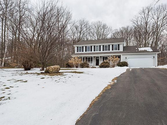 Enjoy your 10 minute ride from the center of Westfield and be in peaceful tranquility at the Oaks country neighborhood with this Large Colonial with Hardwood floors and open floor plan. Large Great Room. Farmers front porch. Ash kitchen cabinets with dining area with all appliances to remain. Formal Dining Room. 2 and 1/2 baths. Master bedroom with cathedral ceilings, 2 closets and full bath with his/her sinks. Ceiling fans in most rooms. 2 car garage. Sliders off family room to deck and patio overlooking private back yard with a Shed. Pellet Stove for 2nd heat source. 3 minute drive to Noble Hospital, Westfield State University and Stanley Park. Generator, zero turn mower, washer and dryer, additional fridge/freezer in garage and garage organizer all negotiable!!