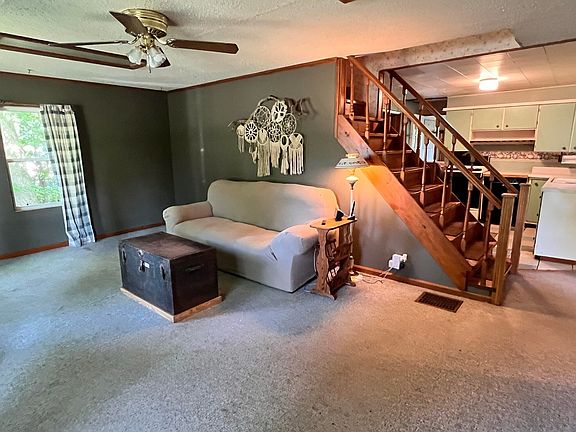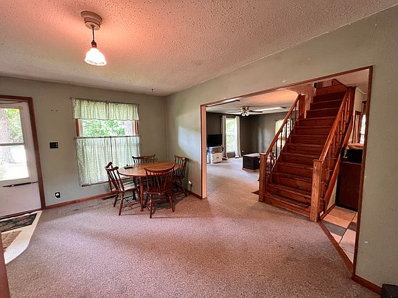 Two story traditional home with 1.07 acres. Up to 5 bedrooms possible, 1.5 baths. Home features open stairway, two walk-in pantries, formal dining room, main floor bedroom which would be an awesome craft room, storage area or office, because of the built-in cabinetry. Upstairs is master bedroom with two walls of closets, two bedrooms which are connected and a huge finished attic area, could be the fifth bedroom. Rear enclosed porch and storage room. Rear deck overlooks a manicured lawn and a ravine, all woods, even a with spring, it is an awesome setting mostly fenced. Also included is an old barn, could be fixed up, owner uses it for storage. Vinyl siding, metal roof, replacement windows and newer furnace.