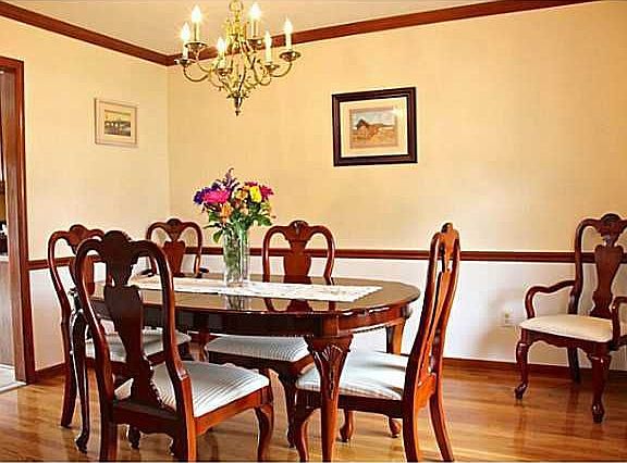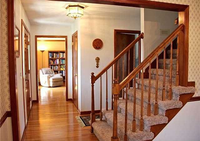 Beautiful home boasts of gorgeous hardwood floors in kitchen, dining room, den & hall. 1st floor home office has french doors. Large ribbon windows in family room allow natural light. Large eat-in kitchen features center island, BB, pantry & desk. Master suite w/ divided bath & walk-in closet. Terrific rec room, office & exercise room in finished bsmt. Updates include carpet & paint! Fenced yard.