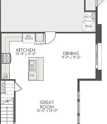 - Eat-in Kitchen, High Ceilings, Open Floorplan, Recessed Lighting, Bedroom on Main Level, Loft, Primary Suite