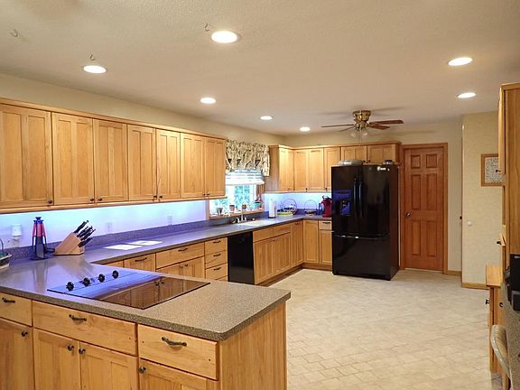 - Features: Solid Surface Ctr, Tile Floor, Wood Cabinets