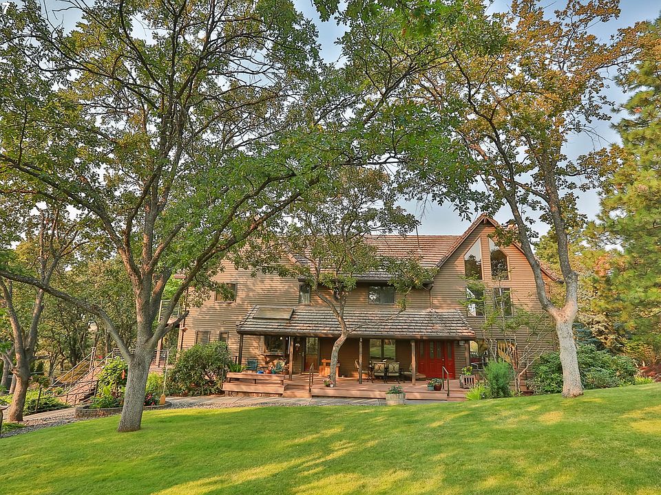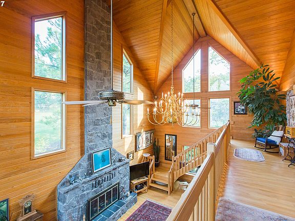 The private setting of this lodge style home is so inviting. Three story home has bedrooms & bathrooms on every floor with 6 bedrooms, 3 full & 2 half baths there is no lack of accommodations here. 19.78 acres of wooded land surround this grand home & includes an oversized 3 car garage & 2 stall barn. On a clear day enjoy the Mt Hood view from the wrap around deck. Country kitchen, spacious living & dining area on the main level.