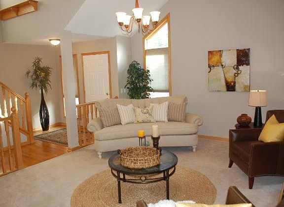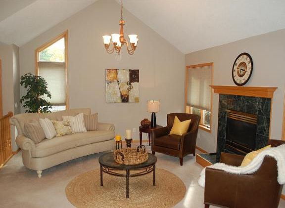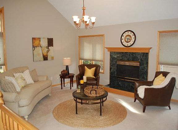 This charming 4 bedroom/4 bath home features a dramatic foyer, vaulted ceilings, main floor master suite, formal dining room, spacious living areas, finished lower level, 2 fireplaces, convenient deck overlooking fenced backyard & 2 car attached garage.
