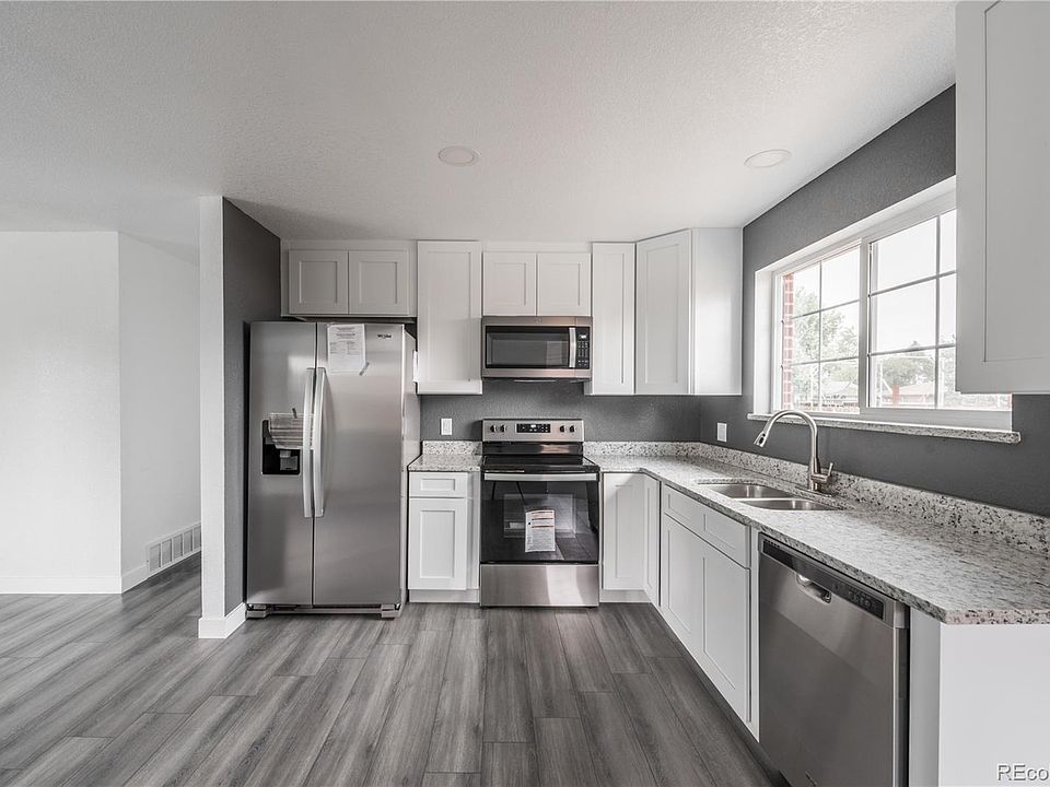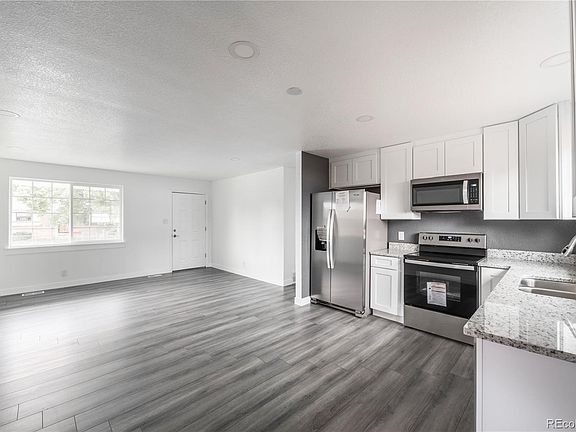 This beautiful and bright, 3br/1ba brick home in the Montbello area is like-new! It has been completely updated with gorgeous, high-quality features. The new kitchen is tastefully designed with granite counters, brand-new stainless-steel Whirlpool appliances and soft close wood cabinets with corner lazy susan storage. The large family room adjoins the kitchen, creating a wonderful indoor gathering space. New windows, carpet, 4-inch baseboards, gorgeous contemporary flooring, lights, faucet fixtures and paint. Three spacious bedrooms with ceilings fans, and a beautiful clean and gorgeous full bath with a built-in blue tooth speaker! The backyard has a front gate for access. New concrete has been poured to extend the off-street parking. Behind the scenes features include a new hail resistant roof and new electrical panel. The full basement offers room to spread out or be used for storage. Come home to Scranton St, and relax! Beautifully remodeled and ready for you!