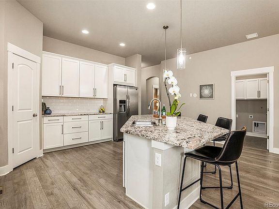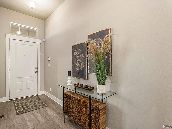 Spacious modern ranch style home in Hyland Village with 3BRs + Office on the main level and a recently finished large basement. Boasting current finishes throughout, this well maintained & gently lived in single level home is low maintenance allowing for the the perfect lock-n-leave life-style. Just one step up into the house from the garage, so you can live large on the main floor & avoid stairs. The large front covered porch is great for shaded summer evenings and porches are a feature of all neighborhood homes adding to the inviting curb appeal. Covered back porch for grilling and outdoor dining with a small grassy area for your pooch or gardening. Stylish laminate plank flooring throughout all central areas on the main level. Huge granite island for extra seating, stainless steel appliances (including gas cooktop) & white shaker cabinets & pantry. Open concept floor plan with an oversized great room. The dining area can accomodate a large dining table as well. 10' ceilings on the main floor. Front office with french doors. The large primary BR has a ceiling fan, and an attached 5 Piece bath w soaking tub and walk-in closet. BR's 2 and 3 are also on the main floor but separated from the Primary BR & are adjacent to another full bath. You won't find a bigger basement in the neighborhood, or almost anywhere. Half of the 2242 SF basement is recently finished and features 9.5' ceilings. The basement includes a large family room, large 4th Bedroom, 3/4 bath and several walk in closets. Plus 2 big unfinished basement storage areas have large doors to access them & egress windows, great for all your storage needs, workout area, work-shop or additional finished SF. Just 2 blocks to the pool, clubhouse and playground and multiple community and city open spaces. Quick access to major arterials, public transportation, trails & a Boulder Denver bike path access point, makes this the perfect location for all types of commutes. Custom plantation shutters through-out