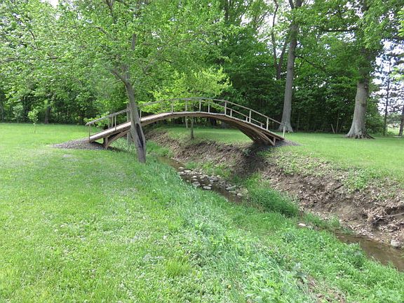 Beautiful wooded acreage with creek and foot bridge. Property backs up to wild life area. Back yard has 2 peach, 4 apple and 3 mulberry trees. Many updates to home, interior flooring, carpet and paint 2015, bathroom updated 2013, waterproofed on basement Foundation walls, 2 Stage Furnace 2013 (will accommodate additions to home) Breaker Box 200 AMP 2014. Well pump 2014, Exterior - Paint and roof, Gutters, and fascia boards 2013. Windows 2005.