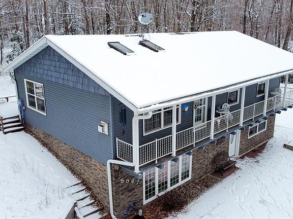 Nicely updated 3 bedroom home with office, 2.5 baths, open concept, walk-out lower level, large garage and several other outbuildings! The home has many updates including vinyl wood flooring in the open kitch/dine/living area, counter tops, appliances, tile showers with glass doors and glass sink bowls. Sliding doors off the kitchen lead to a private back deck and gazebo. The large garage (48x24) is insulated with the back half having horse stalls, there is a large enclosed lean to (48x12) that runs the whole length of the garage. Zoned farming/residential this 5 acre parcel is well wooded with a cleared and fenced area for the horses. Don't have horses, the back half could be turned into a really nice shop or wo/man cave! Home is ready for its new owner!