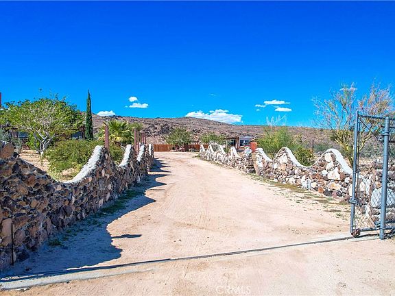 Charming single family residence is zoned for duplex use, which means you can build two other dwellings for a total of three separate structures per ADU ordinances. This house sits on a large private 1.25 acre lot with no neighbors to the west or north. The exterior features a long driveway with stone walls, mature landscaping, a huge covered front patio, a separate outdoor shaded seating area, and an amazing backyard with an outdoor kitchen and covered back patio. There is also a detached laundry room that has a covered entryway directly from the house. The interior features an open floor plan with plenty of upgraded windows for light and proper insulation, the floors have been upgraded with large tiles throughout. The kitchen has also been upgraded with newer cabinets, granite countertops, and an island. The house has fresh paint and a wonderful open floor plan that flows very well. The whole property is gated for privacy and has a separation gate to a large area in the back for whatever you can imagine! There is also a storage shed and manufactured home that is included in the sale price. This is truly a unique property with views and essence that capture the magical desert feel. The possibilities are endless with what you can do here.