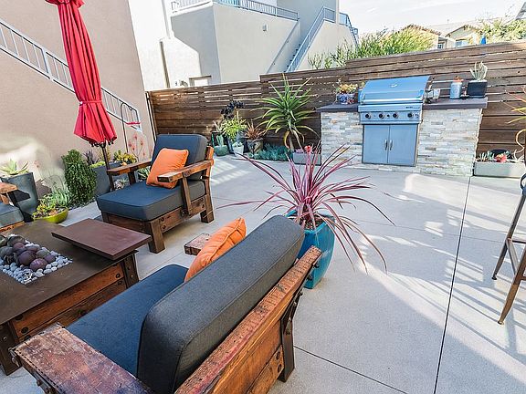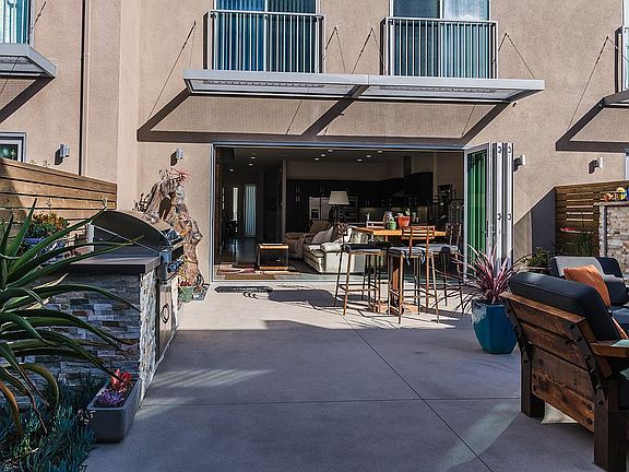 Modern 4 bedrooms plus an office, 3.5 baths and a 2-car garage, including a detached casita over the garage with separate entrance and yard or entertainment space all within 2600+ sq ft of living space. The heart of the home rests in the kitchen and living areas. Enjoy the crisp clean lines of modern European design in your chef's kitchen, which features Bosche stainless appliances, upscale Silestone countertops and custom glass tile backsplash. The connected great room features a reclaimed wood wall. The first floor features an expansive indoor/outdoor central living area made possible by a 5 panel fully retractable accordion door letting the outside flow in. Once the door is open you double your entertaining space. The outside professionally designed courtyard comes with automated drip irrigation, a water wall, grill, and fireplace. Custom made furniture is included. Across the patio is the stairway up to the detached casita, offering one large versatile room with room for a kitchenette, and includes a full bathroom and sitting porch off the front overlooking the patio. Easy to care for and comfortable to walk on, the bleached pale grey/tan faux wood laminate runs throughout the entire first floor. Upstairs you will find 3 additional bedrooms, the laundry as well as 2 additional baths. The modern European design continues through to the baths. The master bath features a large walk-in shower with floor to ceiling glass partition and white subway tiles. The master closet is full of custom drawers and shelving. Two sets of custom barn doors hide the W/D and the master closet.