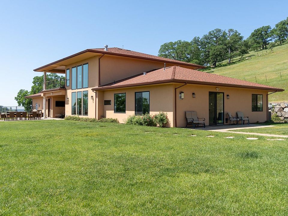 Stunning 4 bedroom, 4 bath home with owned solar and pool in the wine country region of Gold Hill. This 14-acre estate features a 3,900+ sqft home built in 2017 with unobstructed 180-degree east-facing views of the snow-capped Crystal Mountain range. The property features an automatic security gate, 70 tree olive grove, 800+ sqft storage/utility building, and an EID Small Farm and Agricultural water meter (property is ready for your grapes). Enter through the custom double doors and you will be instantly taken with the 18' high picture windows filling the house with light and mountain views. Lives like a single story with the master suite, office, laundry, and common rooms on the entry-level. Premium finishes and amenities are found throughout this house including real wood flooring, stone finishes, custom-built cabinetry, and millwork. Directly surrounding the home is a acre of a fully fenced, flat lawn area with a built-in pool that features an automatic cover, gas heater, and a concrete sun deck for soaking in the sun and the incredible views. Just a 12-minute drive to shopping, restaurants, Starbucks, and Hwy 50. Nine minutes to the town of Coloma and the South Fork American River, and just 45 mins to Sacramento International Airport. Welcome Home!
