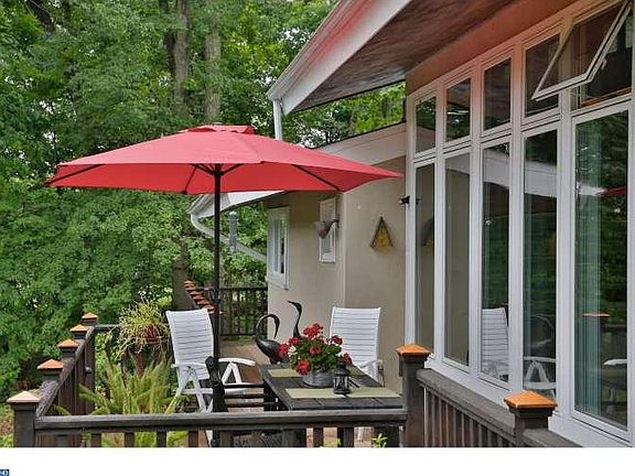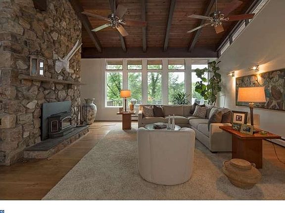 Remodeled to perfection with a fabulous layout, this beautiful Contemporary is exactly what you would expect from it's owner/world renowned artist! Located on one of #buckscountys most beautiful tree lined streets sits your dream home. As you walk up the pathway you are graced by magnificent gardens and magnificent trees and plantings. Open the door and you are immediately wow'd by the spacious great room/living room, wall of glass, exposed beam, architectural details, and soaring stone fireplace! On one side of the great room is a lovely dining room with stunning stone wall and an updated kitchen ready for entertaining. On the other side of the great room is the master bedroom, guest room and spectacular designer bathroom. Enter the lower level from an open staircase to a large yet cozy family room with fireplace. There is a bonus room that can be a studio but would also be a wonderful space for a home occupation! Every room has windows or glass doors that showcase the back-yard paradise! The deck is the place to dine, enjoy a glass of wine, or simply absorb the peace and tranquility that this property provides. Among the gorgeous perennial gardens and beautiful walkways is a charming cottage that completes this turn-key Country Home. You will not be disappointed! ****Square footage is only an estimate. Buyer SOLELY responsible for square footage accuracy