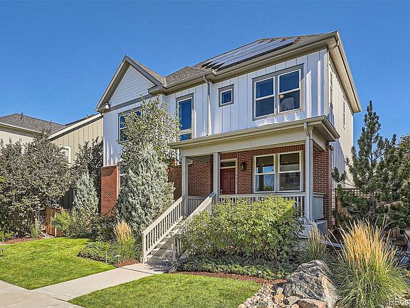 The oversized two-car garage includes built-in cabinets, an attached shed, and a 50-amp outlet for electric vehicle charging. The backyard is beautifully landscaped, and a side yard is ideal for pets or raised garden beds. Relax on the peaceful covered porch surrounded by rose bushes and a lush lawn. Enjoy access to a private pool, clubhouse, playground, and grassy areas right outside the back. Nearby highway access, just 20 minutes to Boulder or Denver. Don’t miss this exceptional home — schedule a tour today!