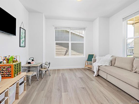The main level showcases an open floor plan with a dedicated front room den—ideal for an office or playroom. At the heart of the home, the kitchen features a large island, crisp white cabinetry, luxury vinyl plank flooring, and stunning quartz countertops that extend throughout the home. The eat-in design creates the perfect setting for casual meals, gatherings, and entertaining.