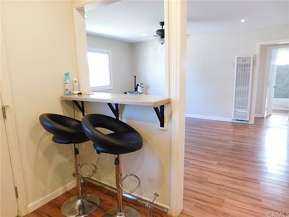 Come by and check out this great Riverside property. Home features new laminate flooring throughout, new baseboards, recessed lighting, new inside paint, upgraded kitchen with newer cabinets, corian counter tops, rolling island, custom backsplash, stainless steel appliances, dual pane windows, stool bar and a large bonus room. The home has an original one car garage that is currently being used as storage/office/laundry. Can be reconditioned as garage. There is a second garage/workshop that is 18 x 24 square feet. Large driveway and possible RV parking. This home also has solar panels that will be paid off at close of escrow!! Hurry this property won't last long.