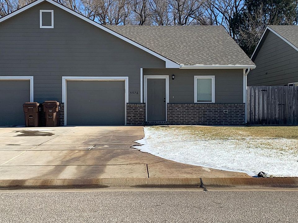 $30.00 non-refundable app fee per person over 18 Owner pays trash Mowing Provided On a well for irrigation 1 small animal only under 20 lbs might be accepted with additional pet fee and pet rent per month. No Evictions No Felonies Income must be shown at 3x the amount of rent. Non Smoking Property Looking to lease this Super nice duplex in South Wichita! Great neighborhood! Has access to a Private Lake as well. (55th St South and Hydraulic) Close to MAFB, Spirit, Derby and Haysville and tons of shopping, restaurants and the Highways. Kitchen has newer white appliances including range, refrigerator and dishwasher. Super cool quartz island in kitchen as well to set bar stools around. Lots of cabinet space. Great walk in pantry with light is also in the kitchen area. Private mostly fenced in large patio with tons of grass behind. 1 car attached garage Duplexes are on a sprinkler system with a well. We take care of the mowing and the trash service. Laundry area is tucked away in the hall. Floating shelves in the hallway. There is also a nice linen closet at the back of the hall. 3 bedrooms, master has en-suite with large closet and ceiling fan. 2 other nice sized bedrooms, 1 has a walk in closet. 1 small dog under 20 lbs only might be accepted with additional pet fee! Sorry no cats. We are pre-screening on the phone for pre-qualification answers No felonies or evictions and No Section 8. Non-Smoking Property Quiet community and looking for great tenant or tenants. Income needs to be 3x the monthly rent Thanks!