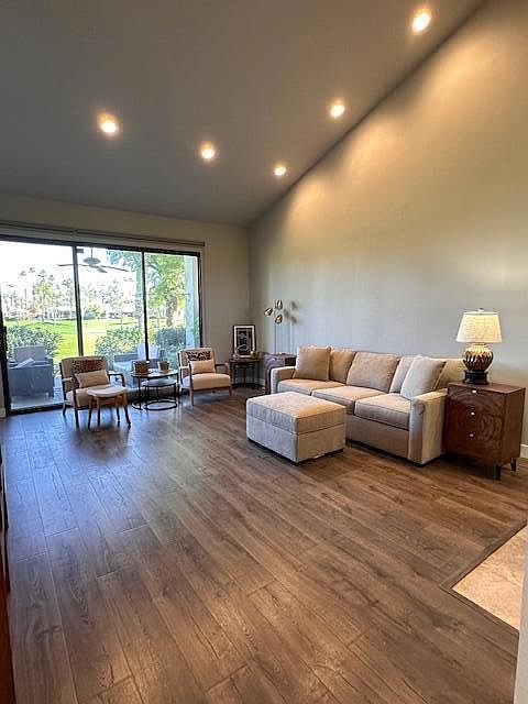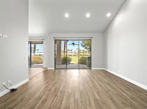 Remodeled condo, freshly painted, laminate and tile flooring. Desirable end unit, light and bright. Vaulted ceilings. Enjoy dinner on your patio located off the kitchen, and morning coffee on the patio outside the primary bedroom. Huge en suite primary bath with large closet. Two full size closets in primary bedroom. Tons of storage space. New air conditioning unit keeps the unit nice and cool. Located on the Palmer golf course steps from the pool! PGA West is an active community close to amazing restaurants and festivals. No smoking permitted. 1 year lease. No pets.