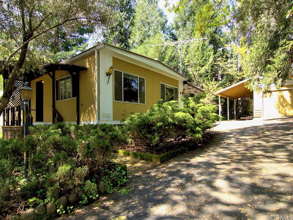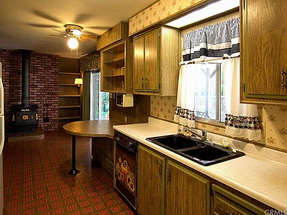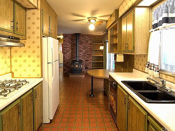 JUST REDUCED! CENTRALLY LOCATED 2 BEDROOM, 2 BATHROOM MOBILE WITH GARAGE & COVERED RV PARKING. Great kitchen offers gas cook top, dishwasher, refrigerator, convention oven, eating table that opens up to the cozy family room with large fireplace. Spacious living room with lots of windows to make it light and bright. Dining room with built in hutch. Spacious master suite with large walk in closet and tub. Spare bedroom has built in shelves and walk in closet with spare bath with walk in shower. Separate room for washer & dryer inside. Front and rear covered decks, dog kennel, detached one car garage with work bench & small work room with power. Circular driveway that offers tons of parking and covered RV parking.