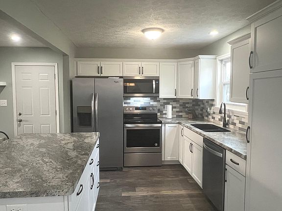 Its not a ranch! Believe it or not--it has 2 spacious bedrooms and a full bath upstairs, plus 2 bedrooms on the main level including the primary bedroom. Nicely updated with full kitchen remodel, updated bathrooms, all interior doors replaced, newer laminate floors, new carpet in main level BR2, and new back door (slider door removed) Roof was new in 2017. HVAC new in 2018. Fenced back yard, lovely front covered porch and an oversized 22x24 garage, located at the end of a cul-de-sac.