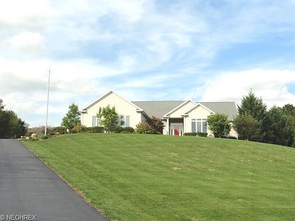 Quality custom built Ranch with 10' ceilings and nice, open, light and bright floor plan, beautifully perched on 1.53 Acre lot overlooking farmland and amazing sunsets. This immaculately maintained home features a spacious Kitchen with island open to Great Room with fireplace, formal Dining Room, Living Room and Den. Whole house generator, public utilities and 2320 sq.ft. Pole Barn with 12' overhead doors and workshop. Truly spectacular!