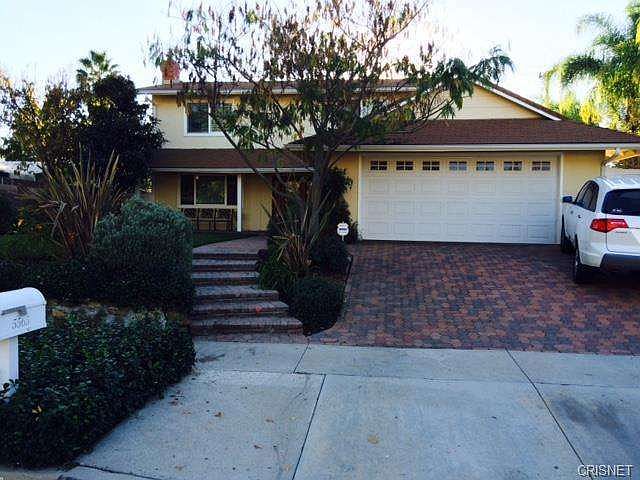 Fabulous Calabasas home! Remodeled open kitchen w/maple cabinets, granite counters, garden window, newer appliances, & breakfast bar. Recently remodeled downstairs bathrm includes built-in cabinets, frameless shower door & designer tiles. Upstairs bathroom is upgraded & includes a spa tub. Downstairs bedroom has its own key-locking slider entrance from the backyard. The backyard is resort like w/mature, lush landscaping for ultimate privacy, newly tiled & plastered pool, stamped concrete deck, tranquil fountain, lrg entertainers patio cover, fruit trees, & side yard including storage shed. Newer pool equipment & new heater. Front exterior is beautifully landscaped w/paver driveway, walkway & patio. Newer dual paned/tinted windows & sliders, newer ceiling fans & designer lighting fixtures, newer upstairs carpet. Tile and Pergo flooring downstairs, indoor laundry rm, closet organizers, plantation shutters, lots of storage under stairs & enlarged linen closet, security system. Two upstairs bedrooms have mountain views! Oversized 2 car garage w/work bench & shelves. Walk to Lupin Hill Elementary (Las Virgenes Schl Dist) & Gates Cyn Park. Trails nearby. 20 min to beach! Turn-key & ready for move in! Items listed as "new"/"newer"/"remodeled" are per seller.