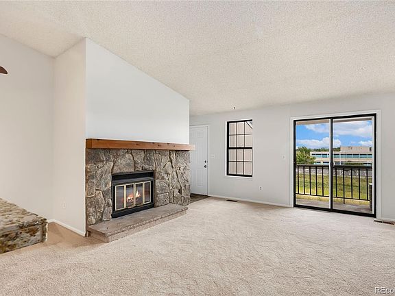 Discover the pinnacle of comfortable living in this top-floor condo nestled within the charming Wood Creek community of Arvada! With vaulted and high ceilings throughout, this residence offers a sense of space and openness that's truly unmatched. Upon entering, you'll be greeted by a welcoming living room featuring a cozy fireplace, perfect for those chilly Colorado evenings. From here, sliding glass doors lead to your own private balcony, a serene spot to take in the fresh mountain air. The dining area seamlessly transitions to the well-appointed kitchen, boasting granite tile countertops and stainless steel appliances. The spacious bedroom continues with the vaulted ceilings, and also offers a spacious walk-in closet and en-suite access to the full bath. In-unit laundry facilities further enhance the convenience of this condo, making daily chores a breeze. With fresh paint and brand new carpet throughout, this home is move-in ready. Everyday convenience is ensured with ample unreserved parking spaces available at Wood Creek for the owner's vehicles! The Wood Creek community offers a fantastic lifestyle with its great proximity to shopping centers, restaurants, and parks. You'll find it all just moments from your doorstep! Experience the epitome of comfortable and convenient living in this top-floor unit within the Wood Creek community of Arvada!
