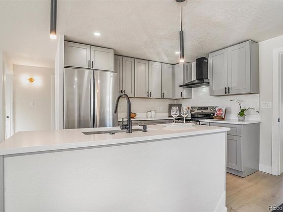 Welcome to your new home! This pristine house is located in Lakewood, five minutes away from Belmar which offers excellent dining, shopping, entertainment, and a short drive to the mountains and Downtown Denver. This beautiful home comes with an updated kitchen with an open layout with quartz counter tops and stainless steel appliances. The house features four bedrooms and two updated bathrooms, with new flooring throughout the main floor and fresh new carpet in the basement. You'll enjoy the large media room perfect for hosting the big game or snuggling up for movie night. You’ll enjoy the large fenced back yard, perfect for those beautiful Colorado summer nights with landscape that requires very little maintenance, and a shed perfect for additional storage. House has an oversized two car detached garage with full cabinets perfect for a work station and who doesn't love huge driveways perfect for that car enthusiast or family with multiple cars. Additionally, the house sits a few blocks away from Lasley Park, Lasley Elementary School, and only a short drive to Alameda International Jr./Sr. High. Don’t miss out on this great opportunity to call this one home!