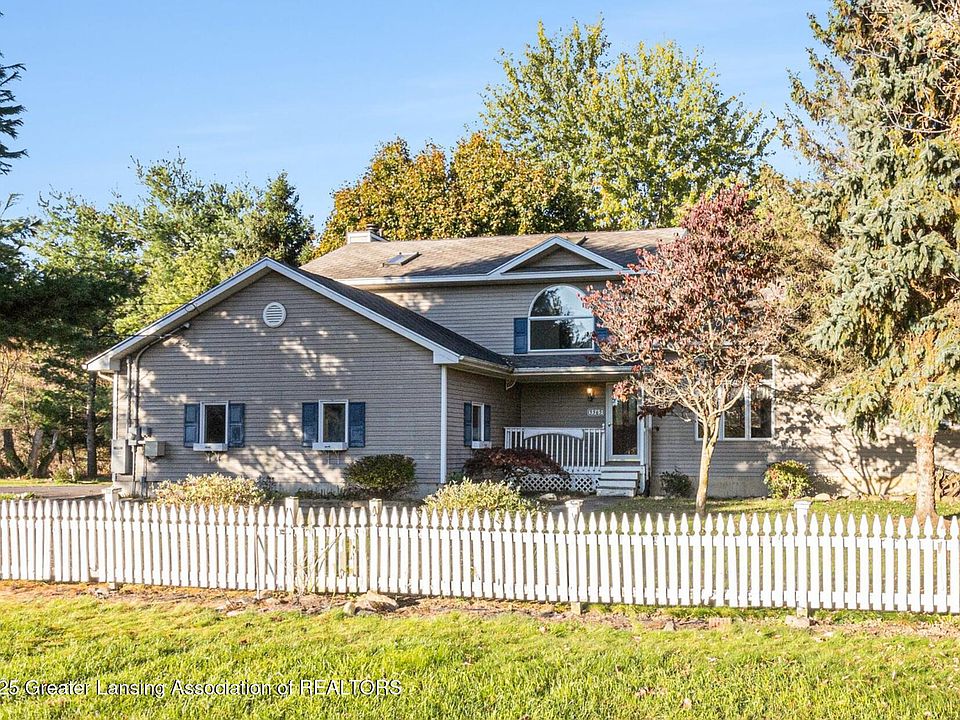 WILLIAMSTON - Move in at closing into this 4-5 bedroom, 3.5 bath home with 2 primary suites on 10 acres and a 30 x 30 pole barn! TREAT YOURSELF! The Holidays are around the corner, and your dream country farm-styled estate on 10 acres in Williamston awaits! This incredible property features a spacious home set back off a winding driveway, reminiscent of a fairytale setting. With over 3,000 square feet of living space, this home and property offer a wonderful opportunity for anyone looking for a private setting on acreage. A main floor addition in 2014 features a primary suite of 728 sq. ft. with a cathedral ceiling, a gas fireplace, a separate laundry room, a massive walk-in closet, and an en-suite tiled bathroom complete with a skylight, dual vanity, and a large walk-in tiled shower. French doors lead to the deck for that quick morning coffee or evening beverage, allowing you to soak in the harmony and sounds of nature that surrounds you. If you prefer to have the laundry in the center hallway off the garage, the hookup is there. This laundry space could also be converted into an office, nursery, craft room, studio, or small den. The kitchen has a tiled floor, granite countertops, oak cabinetry, an eat-in area, and a large pantry! It extends into the gathering room, and a wood-burning fireplace is ready to hang the stockings! A sliding door leads to the 12 x 66 deck that spans nearly the entire width of the home. The back hallway leads to the mudroom, with potential for laundry hook-up and access to the 2-car attached garage. Upstairs, there are three bedrooms and 2 baths. The original primary suite with a spacious ensuite bath with skylight, a walk-in closet, two secondary bedrooms, hallway with two large linen closets, and a main hall bath with a skylight to share. The downstairs area is partially finished and includes a hobby room and recreation room with daylight windows. This space could also be used as a 5th bedroom, if desired. Tons of storage under the stairs and in the mechanical room to store all your seasonal and sporting goods. A 30 x 30 pole barn is perfect for extra parking, storage, or as your handy barn for whatever hobbies you enjoy! 16 16-watt generator is included and ready to take on winter storm outages! Ten lovely and private acres are ready for exploration and enjoyment! Williamston offers a welcoming small-town atmosphere with abundant shopping and dining options, two theatres, a park, a senior center, a market, and a river. C'mon Home!