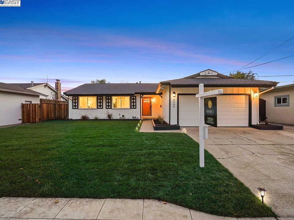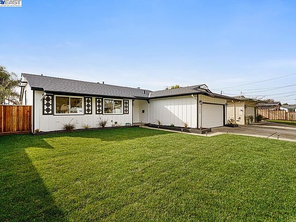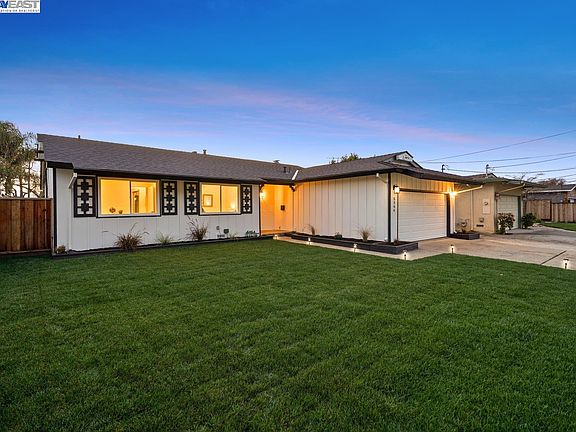North-east facing and beautifully renovated with top notch finishes! Located very close to the Lake neighborhood, this completely renovated home features 4 bedrooms, 2 bathrooms and a large 2 car garage. Entering the home, you are greeted with a spacious and light-filled living room which is perfect for gatherings. An open floor concept with a very spacious and gorgeous kitchen is certainly a rare find! The kitchen has been tastefully updated with soft-close hardware cabinets, custom shelves, designer backsplash tiles and new stainless steel appliances. Completely renovated bathrooms include a glass rain shower enclosure, shower tub, high-efficiency toilets, designer tiles and new vanity sets. Built on a 6,200 sq. ft. lot, this home offers one of the best backyards in the area — upgrades include custom designed landscaping, concrete pad, custom built redwood pergola with hanging lights for outdoor entertainment space and more! New roof, energy-efficient LED lighting & light fixtures, ring doorbell, two panel shaker style solid wood doors, oakwood flooring, new baseboards, Google Nest smart thermostat, upgraded AC system, new interior/exterior paint and SO MUCH MORE! Close proximity to parks, schools, shopping centers, HWY 84/Dumbarton Bridge, I-880 and more. OH Sat and Sun 1-4pm.