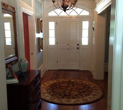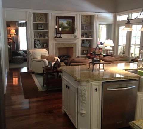 Custom built and Picture Perfect on over acre lot with deeded lake access. 4 BR 4 BA, walnut wood flooring in all living areas, coffered ceiling in GR, over sized DR gorgeous lighting. Kitchen has 5 burner gas cook top, pot filler, large island seats four, thick granite tops with tea stained maple cabinets and barrel ceiling. Soft touch drawers. Sitting room in kitchen with FP. Laundry has built ins galore, desk, pantry, workout area with tv area. Master Bath with marble walk in shower with rain head and two shower heads, oval tub,2 separate vanities, 2 walk in closets. Extensive molding ,Screened porch with brick pavers wired for tv, covered lanai all over looking Gunite pool with water feature. Wired workshop, extra storage and fenced. Circular drive. 2 HVACs.2 water heaters. Full walk up attic. Beautifully landscaped. Plantation shutters and wood blinds.