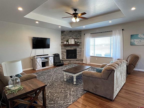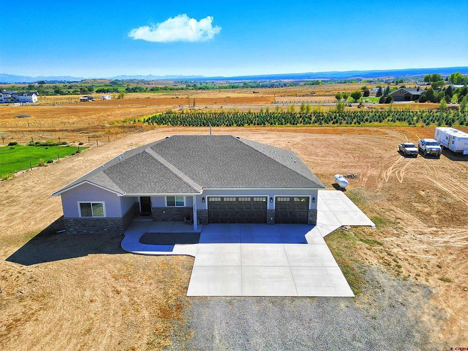 Gorgeous custom home in a quiet country subdivision on 1.3+ acres with irrigation water!! This charming house is now available for sale and offers a comfortable and inviting living space. With 3 bedrooms, 2 bathrooms, and ample parking with a 3-car garage and RV pad, this property provides plenty of room for your family and guests. As you approach the house, you'll be greeted by a stucco and stone exterior that adds character and curb appeal. The covered front and back patios provide the perfect spot to relax and enjoy the outdoors. Step inside through the large foyer, where you'll find a spacious family room with a cozy gas fireplace, creating a warm atmosphere for gatherings. The split bedroom floor plan ensures privacy, with large secondary bedrooms that offer comfort and versatility. The open kitchen features an island, granite countertops, and a pantry, making meal preparation a breeze. The shiplap dining room adds the perfect blend of character and elegance to your dining experience. Additional features of this home include a mudroom with storage, perfect for keeping things organized, as well as an office or nursery for added convenience. The master suite is truly impressive, boasting a walk-in shower, double vanities, and ample space to create your own personal retreat. With its single-story layout and generous square footage of 2026 sqft, this property provides both functionality and style. The oversized 3-car garage offers plenty of storage space for your vehicles and belongings. Located on Fuchsia Lane, this home offers easy access to nearby amenities, and an easy commute to Olathe, Montrose, and Delta! Don't miss out on the opportunity to make this house your new home! Contact us today to schedule a viewing.