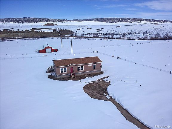 70.7 acres on the Yampa River, complete with a 1404 SF manufactured home built in 2014 on cement blocks with poured concrete for foundation. With 3 bedrooms, 2 baths, a big open kitchen and an island, you will have all you need to feel at home. The master bath boasts a whirlpool bath, double sinks and lots of closet space.