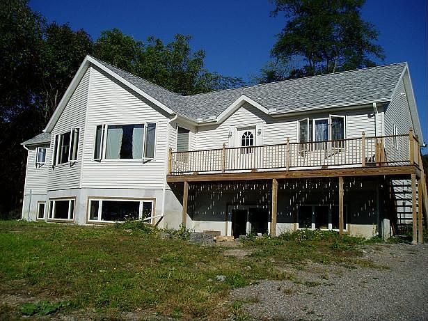 Ranch home built in 2004. 1936 sq ft. Three bedrooms, 1.5 baths. Open airy with cathedral ceilings, Oak floors, Oak woodwork, Custom Oak Kitchen. Lake front is 105 wide. Property is .93 acres. Radiant Heat fueled with propane. Deep walk out basement. Municiple water and sewer.