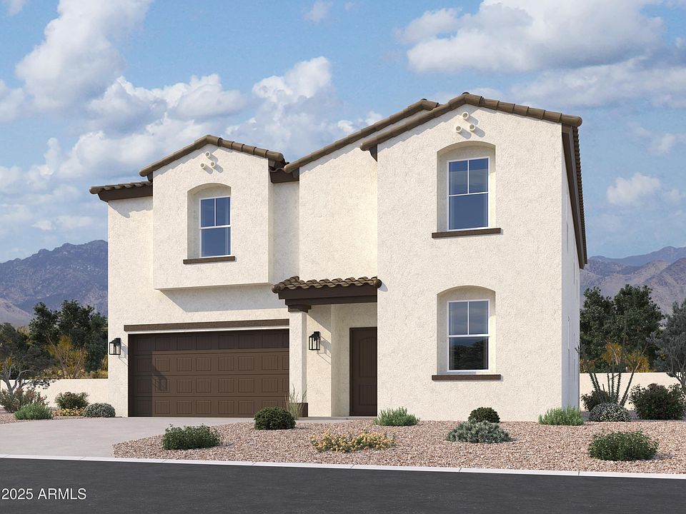 Brand new community in Buckeye! Just over 3000 sq ft, this floorplan has It all. 5 bedrooms, 4 1/2 baths, a full bedroom and bathroom downstairs, a half bath downstairs, a large oft upstairs, and a 3-car tandem garage! Deisgner Milan Collection Palatte that includes 42'''' gray cabinets with pulls, beautiful backsplash, stainless steel side by side refrigerator, W&D, stunning 4 panel glass center door leading to backyard, 2'' faux blinds. This home offers so much space and a beautiful open concept with 9-foot ceilings downstairs and 8- ceilings upstairs. The outside has a great curb appeal with included desert landscape. You walk into an open space with wood look plank tile throughout. There is a separate carpeted den area to be utilized as needed. The open concept living, kitchen, and dining area downstairs is great for entertaining. Upstairs has a spacious loft for additional living space, along with 4 bedrooms, 3 full baths, and laundry. The primary room has a large walk-in closet, double sinks, a large walk-in shower, and an additional linen closet for extra storage. The 3 additional bedrooms all have spacious walk-in closets as well. Great location close to dining, freeways, parks, and entertainment!