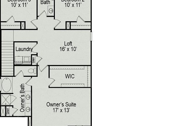 The Braselton II at Crosswinds at Cedar Creek offers a rear corner covered patio, easily accessible from the light-filled family room. The large eat-in island kitchen, featuring granite countertops and upgraded cabinets, overlooks the family room, making entertaining a breeze. Upstairs, a spacious loft can be customized into a fourth bedroom and separates the private owner’s suite from two secondary bedrooms. The owner’s suite is a true retreat, featuring a private bath with a double vanity, along with a separate garden tub and standing shower for ultimate relaxation. PHOTOS ARE REPRESENTATIONS!