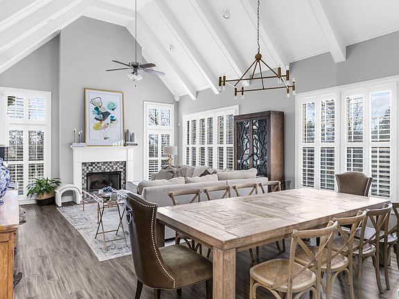 Beautiful home on one of the largest lots in Northridge of Trace Crossings! Features vaulted ceilings with wood beams, new hardwoods throughout the main level and spacious living/dining area. Open kitchen with gas cooking, stainless appliances, two ovens, stone counter tops and large island with an abundance of cabinets. The primary suite is located on the main level at the rear of the home for privacy. Primary bath has separate vanities, soaking tub, and large separate shower. Upstairs features three good sized bedrooms and two full baths. Custom plantation shutters throughout the main level, wooden blinds upstairs and other custom touches throughout. Beautiful views of the mountain from your quiet covered patio while soaking in the hottub. So convenient to schools, local shopping and eateries in the heart of Hoover. Move-in ready!