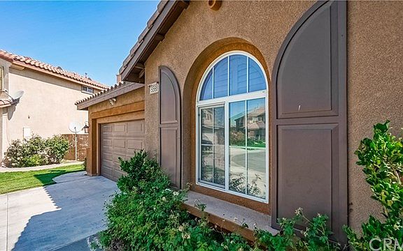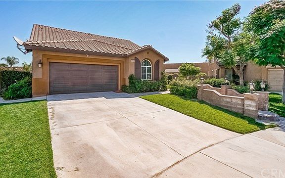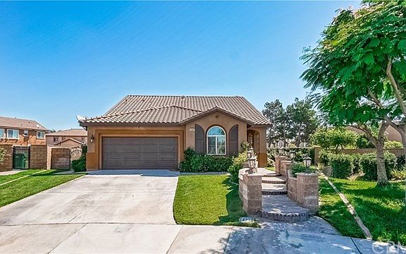 Beautiful 4 bedroom home positioned at the end of quiet cul de sac in a family friendly Eastvale neighborhood! Stunning curb appeal with inviting lighted, decorative walkway. Lush landscaping and garden. Step into the spacious Living/Dining room area with large 18x18 tiles throughout downstairs area leading to the kitchen. Kitchen features island with breakfast bar, additional eating area, pantry and granite counters and opens to the family room. Family room is complete with large fireplace. Plenty of natural light from window and sliding glass door that exits to backyard. Home is perfect for multi generational living or large family. Master suite has wood flooring, spacious full bathroom and walk in closet. Additional bedroom downstairs can be used as office or guest quarters. Plantation shutters throughout the home. Upstairs boasts 2 additional bedrooms, huge loft and full bathroom. Extra large backyard with beautiful stamped concrete and grass areas. Fenced side yard currently used for their pets but offers plenty of storage. Perfect yard for entertaining. Award winning school district, close to transportation and shopping.