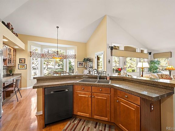 This ranch style Genesee home in Heron Estates backs to a greenbelt and exemplifies the ease and comfort home buyers are looking for. Grant Ranch has many top-notch amenities with trails, parks, pool, tennis, clubhouse and marina. The main floor has an open floorplan and vaulted ceilings with a great room style kitchen. The three-sided gas fireplace can be seen from all living areas. There is a main floor primary suite with heated tile floor in the bathroom, plus 2 additional main floor bedrooms. In addition, there is a large study off the front entry. The unfinished basement has a structural subfloor and is a great opportunity to build equity and make it your own. The multi-level covered patio has a powered awning for additional shade on hot summer days. You’ll love the privacy and professional landscaping in the surrounding yard. There are so many extras to mention including new carpet, newer print resistant black appliances, newer furnace / ac, new privacy fencing, 5-year-old roof, heated tile in primary bath, and many other improvements inside and out.