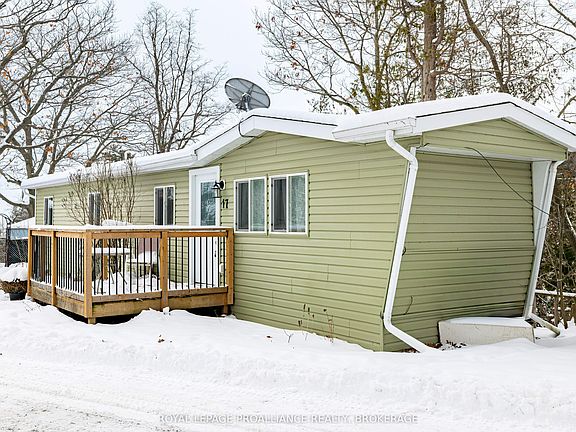 Stunning views over Millhaven Creek and the surrounding ravine highlight this stylish, modernized mobile home just minutes from both Bath and Amherstview. Nestled in a quiet, peaceful community, this one-bedroom, one-bathroom home has been freshly and professionally painted throughout and is truly move-in ready, whether as a full-time residence or a seasonal retreat. Enjoy the serene setting from the spacious private back deck with southward views toward Lake Ontario and the Amherst Island ferry. Conveniently located approximately 10 minutes from Highway 401 with easy access to both Kingston and Napanee, this home presents an excellent opportunity for affordable, tranquil living in a beautiful natural setting.