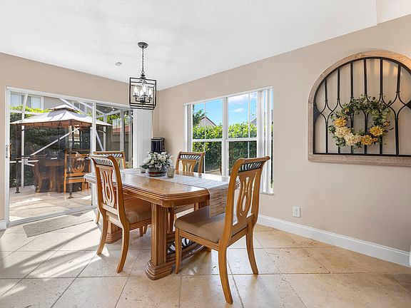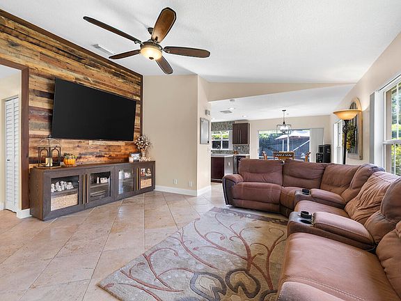 Welcome to an exclusive opportunity to own a hidden gem in the Wyndham Lakes North community! This impeccably maintained 3-bedroom, 2-bathroom home has never before graced the market, offering a rare chance to call it your own. As you step through the front door, you are welcomed into a living room with vaulted ceilings, creating an airy and inviting atmosphere. The television wall is adorned with reclaimed wood. The kitchen is a culinary masterpiece featuring brand new stainless steel LG appliances, an oversized island, generously sized custom cabinets, and Moritz Quartz countertops. Primary bedroom is a true retreat, featuring sliding glass doors that lead to the patio, two closets, and vaulted ceilings. Both bathrooms are adorned with premium finishes, including an unfinished travertine vessel sink in the primary bath and a travertine countertop with an under-mount porcelain sink in the guest bathroom. Espresso wood-look porcelain tile in all bedrooms. Large screened patio, fitted with luxurious travertine pavers and surrounded by majestic Clusia's for privacy. Oversized lot perfect for entertaining or relaxing. Minutes to grocery stores and dining. A-rated schools. LOW HOA. SHOWING FOR BACK-UP OFFERS!!!