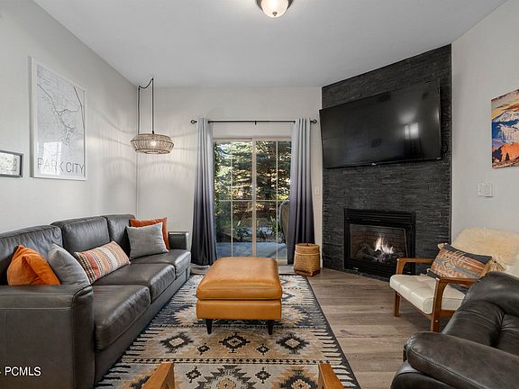Perfect location amidst the scrub oaks and trail system. Just steps to the resident-exclusive Hot Tub. Tastefully updated 3 bed 2 bath main floor living in amenity rich, nightly rentals allowed, Bear Hollow Village. Assigned parking and storage closet in heated garage. Floor to ceiling stone gas fireplace, LVP flooring, granite counter tops, huge soaker tub & separate shower in primary bath, covered patio w/BBQ and fully furnished. On Free Bus Route. Clubhouse with pool, gym, great room and spa.. Pet friendly. Backs to Olympic Park. 12 min. to skiing, 25 min. to airport.