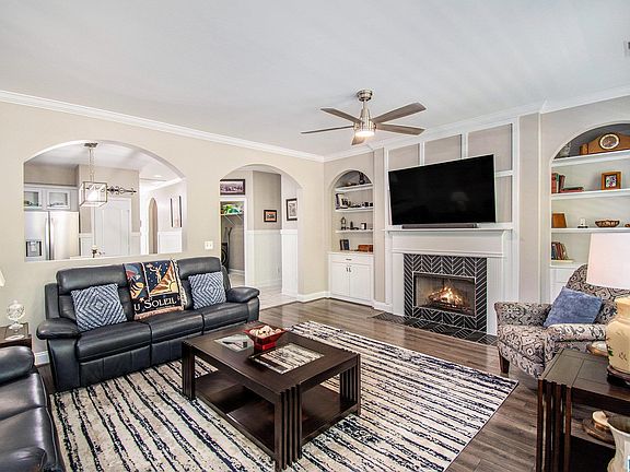 Beautifully Updated Home on Lake Cyrus' Park Side Circle! Move right in and enjoy this impeccably maintained with stylish upgrades throughout . The spacious eat-in kitchen boasts ALL brand-new stainless appliances, new subway tile backsplash while plantation shutters add a classic touch in every room. Main level highlights include a large laundry room, abundant closet space—including walk-in closets in every bedroom—and a brand-new HVAC system. Upstairs, hardwood steps lead to a third bedroom and bath, along with floored walk-in attic for all your storage needs. Additional features include a two-car garage with an epoxy floor and an extra storage closet, updated vanities, custom wainscoting in the foyer, kitchen, Mbath, PLUS arched built-in bookshelves in the living room. All new brushed nickel lighting/ceiling fans, plumbing fixtures, and cabinetry pulls, and door levers throughout the home with qaurtz countertops and undermount sinks! Partially fenced-in backyard with patio.