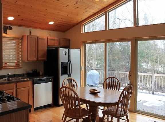 Looking for a home/cabin on a very beautifully unique piece of property? This 2 bed/2 bath home built in 2005 has all the extras: cathedral (knotty pine) ceilings, hardwood flooring, granite flooring, granite showers, 2 fieldstone fireplaces, 4 sliders over looking the pond, river and rolling hills, stainless steel appliances, custum cabintry for kitchen and wet bar on the lower level, walkout basement, wired for automatic generator hookup, and everything is installed for Central Air (just need the unit). The property is rolling with a mixture of hardwoods, pines, and cedars, beautiful large spring fed pond, just over 600 ft on the Manistee River, and adjoins to State Land, seasonal road just about 100 yards from property. The seasonal road is used for snowmobile trails in the winter, great hiking with bridges that goes along the river. To top this all off, there is a large 24x40 garage with approximate 14 ft ceilings with attic to store all your toys. This property is screaming for the Outdoor Enthusiast to take notice or some one that just wants a place for peaceful serenity. The views from the wrap-around deck of the river, hills and pond will make you think you're at your own private retreat. You will not be disappointed looking at this property!