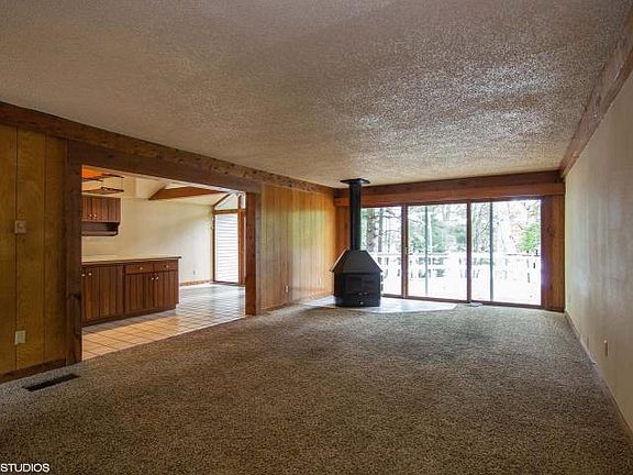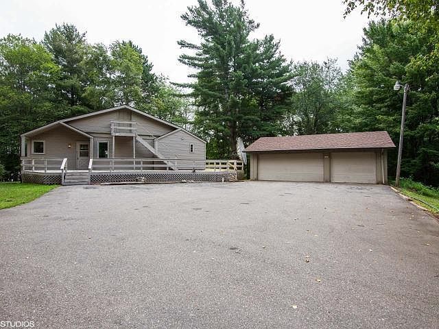 232 ft of level frontage on Lake Julia! Home offers 1 bedroom and 1 bathroom on the main floor. Oversized kitchen and living area with fireplace overlooking the lake. Full finished walkout basement has 2 additional bedrooms and a full bath. Outside you will find a large wrap around deck, blacktop driveway and a 3 car det garage. House sits at the end of a quiet dead end road just a couple miles from town! New roof on the house and Garage! This is a Fannie Mae HomePath Property.