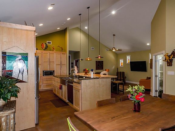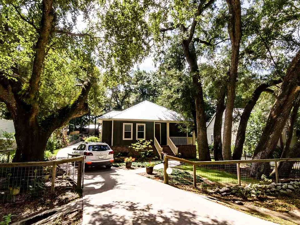 Less than a five min walk to the center of Fairhope.This 2bdr/2bth split level plan is carefully designed to provide spacious living with minimum maintenance.Towering vaulted ceilings and stained concrete floors frame an open kitchen/great room featuring custom cabinets w/drawers, live edge maple and granite counters, barn doors and a host of other custom features. City/country living at its best.