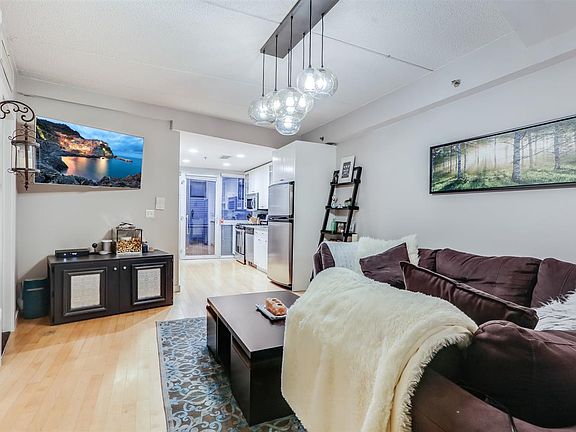 This 744 square foot condo boosts hardwood floors, floor to ceiling windows with tons of natural light. Bright white open concept kitchen equip with recess lighting, granite counter tops, an updated back splash, and stainless steel appliances. Stunning West Elm chandelier in living room. Master bedroom has large front window with black out blinds and huge walk in closet. In suite master bathroom with beautiful slate floor and large slate shower. Bedrooms located on opposite sides of apartment. Second bathroom also has slate floor and shower. Second bedroom is a good size with a large closet and floor to ceiling windows. This unit is located in downtown Hoboken and is very close to the PATH train and all NJ transit trains/buses. SUPER easy commute into NYC! It is also only 3 blocks to the light rail. Close to grocery stores, tons of restaurants, bars, Southwest Park, coffee shops and boutiques. This condo, built in 2007, includes central air/heat, brand new/barely used washer/dryer in unit, gas range, microwave, dish washer, fridge and built in surround sound hook ups. It is located in a seven unit, two building condo property filled with really nice neighbors. The building is concrete and steel with a very cool modern/urban vibe to it. The HOA covers garbage removal, water, snow and leaf removal, and any common expenses.