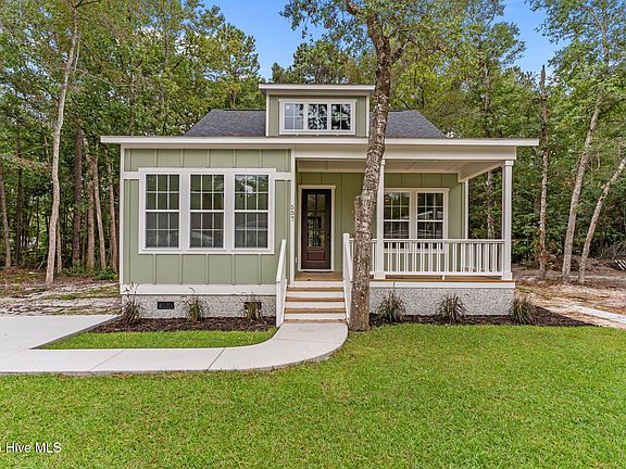Architectural shingles give the black onyx roof depth and really set off the box dormer. Inside this home has 10ft ceilings throughout! Vaulted living room ceilings, ship lap white wash fireplace wall with a 60'' electric white fireplace. Open kitchen with island and driftwood cabinets, and granite counter tops. Appliances include dishwasher, range and hood. Main bedroom has a walkin closet. 2 beautiful full baths with with shaker style wainscoat trim. Full size laundry room. Wood ceiling fans in bedrooms and living. Large 72'' windows allow the light to come pouring in. 8ft doors give this cottage a grand feel and the advantech floor system provides superior strength, moisture resistance and squeak free. If you have been looking for something close to the water and a laid back lifestyle this is it. a short golf cart ride to two waterfront county parks and NC Wildlife water access.